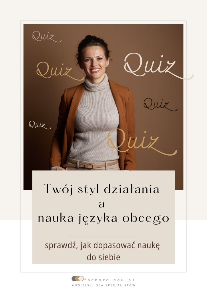 Jeśli nie wiesz jaka forma nauki języka angielskiego dla potrzeb zawodowych będzie najkorzystniejsza dla Ciebie, możesz rozwiązać quiz pt. „Twój styl działania a nauka języka obcego” – sprawdź, jak dopasować naukę języka do siebie.